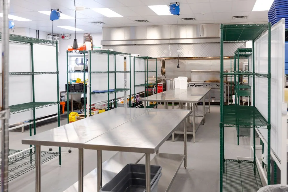 Our 10,700 sqft. AHS Certified, Chef-Designed Kitchen was created with the needs of a vast scope of culinary businesses in mind. Our Twenty zones, made up of stainless steel work tables, are the perfect size for your home-base while utilizing the Kitchen facilities and equipment listed below.
